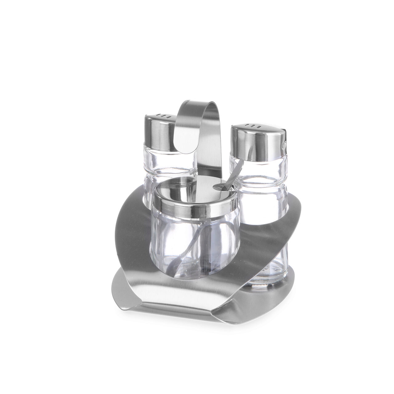Otel Inoxidabil 3 piese - sare, piper, mustar Cu lingura de mustar Finisare mata 100x95x(H)115 mm