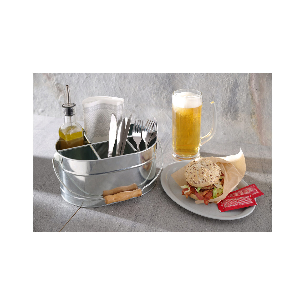 Set rustic tacamuri si servetele, Hendi, tip galeata, 245x167x(H)132, otel galvanizat