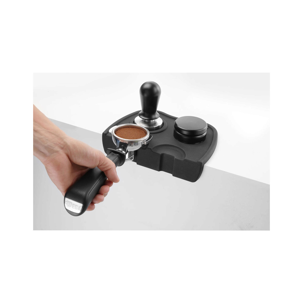 Fabricat din silicon, cu spatiu pentru introducerea a 2 portafiltre in timpul umplerii. Cu doua prize pentru a plasa tamperele.