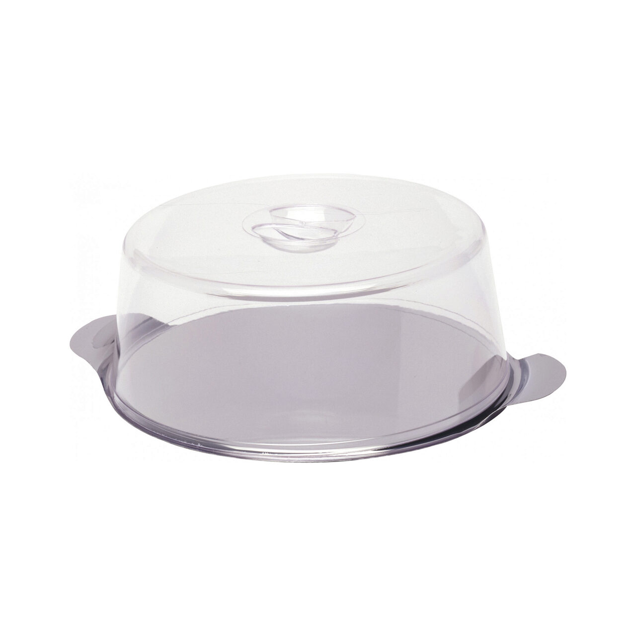 Suport / Platou tort cu capac plastic transparent, Hendi, tava rotunda inox cu manere, diam 300 mm x110 mm (H)