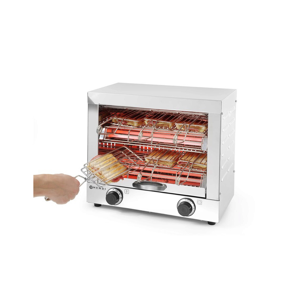 Toaster/Sandwich-maker, 2 rafturi, 6 suporturi pentru prajire, tuburi cu infrarosu pentru incalzire rapida, cronometru, temperatura maxima in 30 secunde, 3000 W, Hendi, 438x290x402 mm