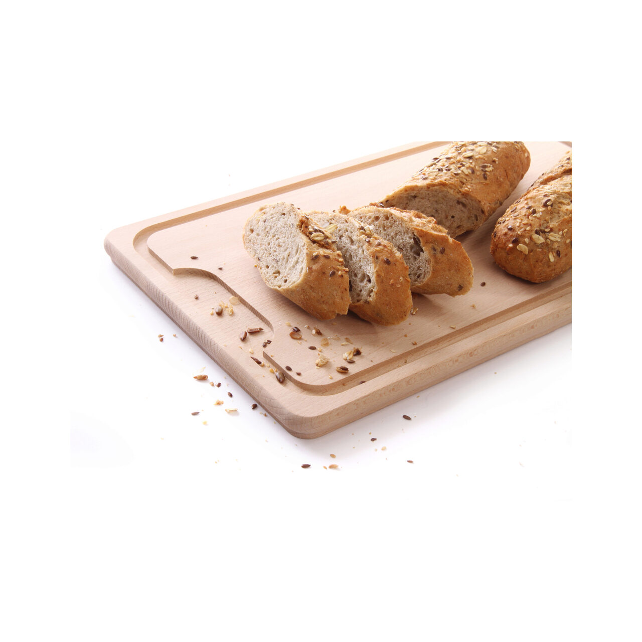 Tocator solid din lemn de fag cu sant scurgere, 390x230x(H)16 mm, Interzisa spalarea la masina de vase. greutate neta 0,925 kg.