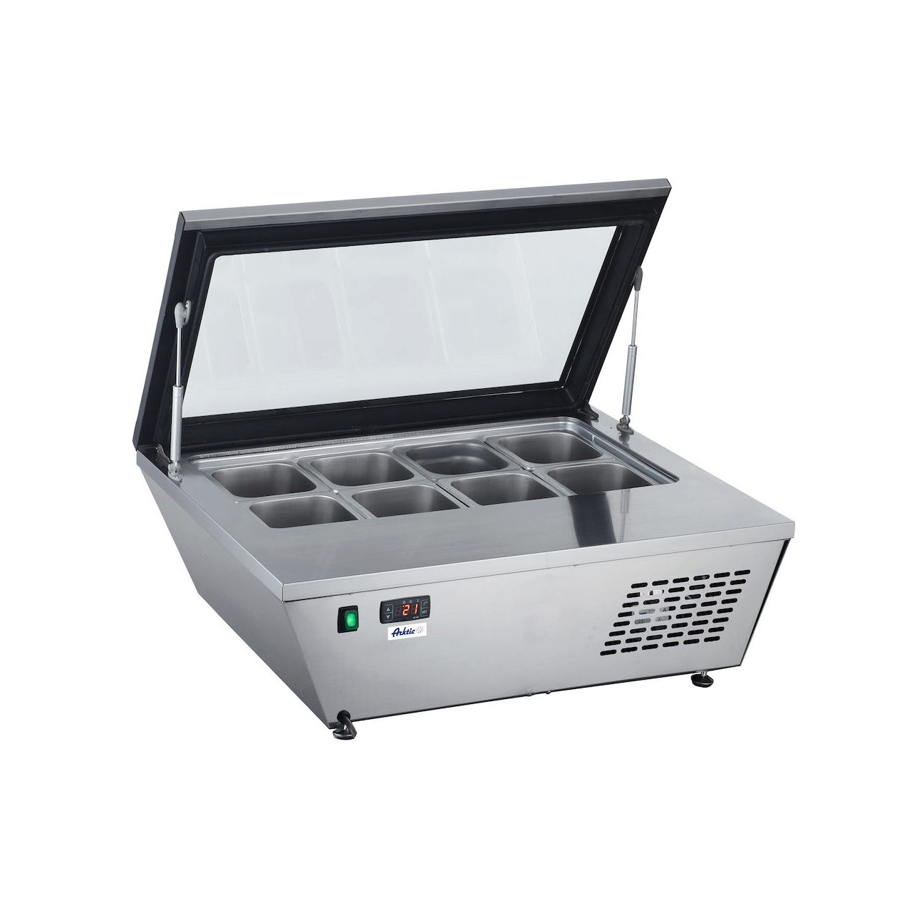 Se potrivesc 8 containere GN 1/6 GN sau 4x containere GN 1/3 (inaltime maxima 100 mm).