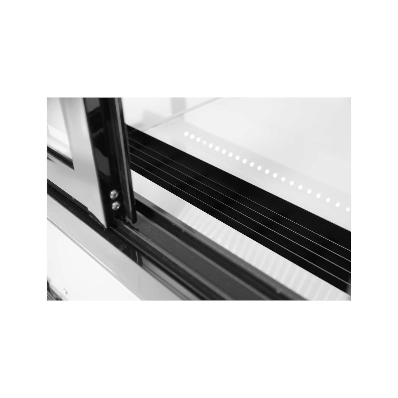 Carcasa din otel inoxidabil prevazuta cu geam dublu. 2 usi glisante. Racire cu aer rece cu auto-dezghetare, compresor amplasat sub camera. Cu iluminare LED in partea de sus si sub fiecare raft. 4 roti din care 2 au frane.