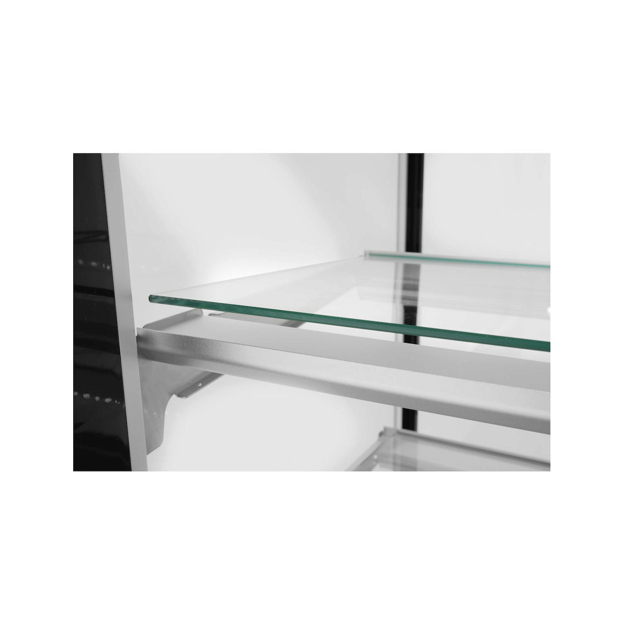 Iluminat LED luminos în partea de sus și sub fiecare raft.